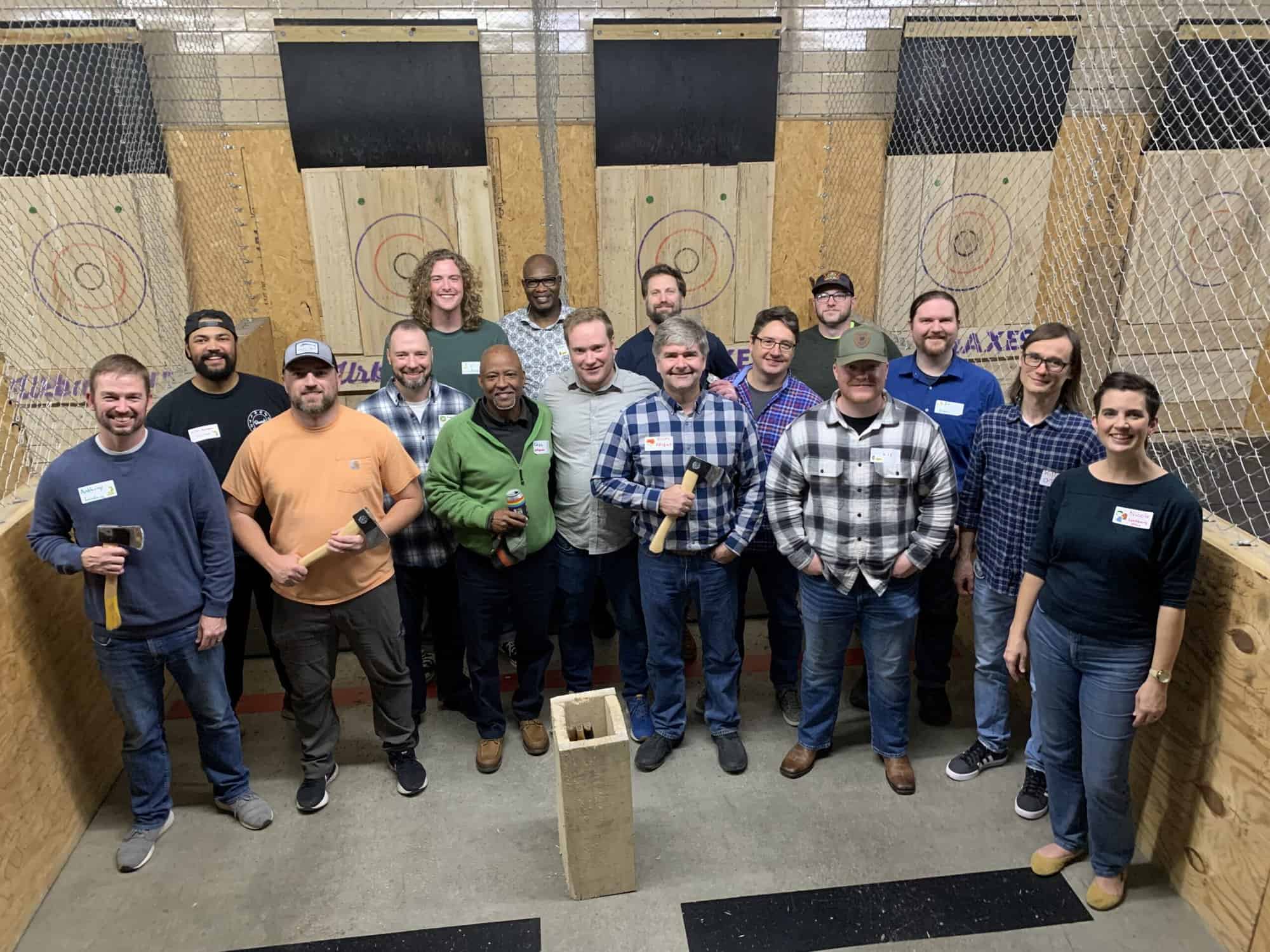 National Property Consulting Group (NPC) employees who are local to or were passing through the Cincinnati headquarters convened for their annual holiday party on December 15. This year’s event featured an axe-throwing competition. Project Manager Stan Wester fended off challenges from many other determined novices to win the event. A good time was had by all.